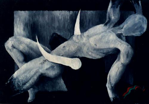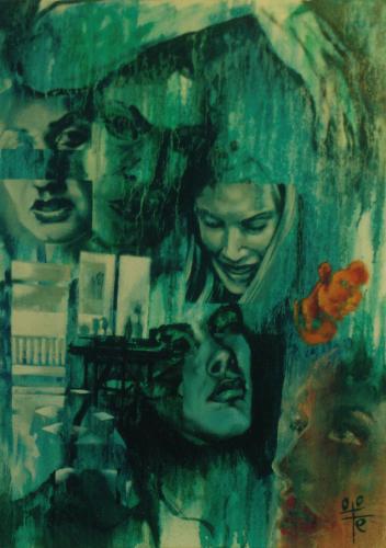 Le opere di Enrico Ferraris rispondono ad un disegno ben preciso, ovvero quello di racchiudere i vari esperimenti sinora condotti in un unico, fluido storyboard, come testimonia anche la scelta del titolo: Riassunto delle puntate precedenti... oh no! It is happenin' again. Sebbene la collocazione frammentaria dell'opera non ne favorisca una lettura unitaria, ad un'attenta analisi ci accorgiamo che la storia narrata è in realtà una sola, e che il bordo destro di ogni singola tela rimanda a quello sinistro della successiva. In tal modo si ottiene un vero e proprio racconto, costituito da più episodi, quasi si trattasse di una pellicola cinematografica. Se da un lato l'opera qui presentata diviene l'espressione più elevata della ricerca in atto, dall'altro il giovane artista novarese vi include la maggior parte di quelle componenti che hanno caratterizzato, sin dall'inizio, la sua produzione pittorica. Motivo, questo, che comporta la ripresa degli studi condotti sulla percezione visiva inaugurata dall'artista belga Escher, e che nei lavori di Ferraris si traduce nel groviglio di corpi umani, andando metaforicamente ad aprire e chiudere l'intero percorso. I singoli episodi, volti e situazioni che si alternano all'interno della storia narrata, non sono altro che il frutto di testimonianze tanto concrete quanto nascoste, o meglio camuffate, dalla vicinanza di altri soggetti. Valga come esempio il frammento con l'uomo caduto dalla bicicletta, fiamme alle spalle. Il soggetto non è altro che il particolare di una famosa foto di repertorio dei fatti di Tien-an-Men, eppure in questo contesto esso può assumere tanti significati a seconda del bagaglio culturale di ciascuno di noi. Ciò comporterà tante chiavi di lettura quanti saranno i fruitori dell'opera.