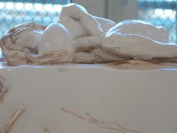Questa presentata presso la Galleria La Pigna, parte integrante di Palazzo Maffei Marescotti, sede del Vicariato di Roma a due passi da Largo di Torre Argentina, vuole essere una mostra dedicata alla maternità. Dopo aver affrontato la morte a più riprese nei miei progetti curatoriali, ho pensato fosse il momento di affrontare il suo opposto, la vita. E nel suo momento più misterioso, ovvero il concepimento, e nella straordinaria trasformazione fisica che accompagna la crescita del feto all’interno del corpo materno. Ne è derivata un’esposizione molto intima, raccolta, anche perché le opere selezionate sono state davvero poche, prediligendo in tal senso un allestimento che desse modo a ciascuna di esse di dialogare coi visitatori, evitando quindi di accostarle troppo l’una all’altra. In alcuni casi le artiste donna hanno fissato nei loro lavori immagini di amiche, figlie e nipoti, mentre in linea di massima gli uomini sono ricorsi alla rappresentazione della Madonna col Bambino o comunque di altre divinità. Il percorso espositivo, pertanto, si apre con il bellissimo ed imponente olio su tela di Barbara Pinna, Francesca e Diana (2010), in cui se il pancione dell’amica ritratta di profilo cattura inevitabilmente lo sguardo, in seconda battuta anche la tela, posizionata oltre la donna e vista dal retro, incuriosisce lo spettatore. È da leggersi come l’omaggio ad un’amica che, pur svolgendo anch’ella una professione legata al mondo dell’arte, in quel frangente della sua vita ha preferito concentrarsi sulla creatura che portava in grembo, lasciando momentaneamente da parte la carriera professionale. In Maternità (2016) di Francesca Angelica Foresta capita proprio di guardare all’interno del ventre. Nata prendendo le mosse da una ecografia, l’opera rimanda a quel mondo circoscritto che nutre e protegge il bambino ormai ben formato e pronto alla nascita. Chiaro il riferimento del ventre come un mondo a sé, completo e complesso come un intero universo. Anche nell’omonima scultura in creta di Agnese Cabano, datata 2005, si percepisce un forte senso di protezione. Ma stavolta la donna, che assume essa di riflesso la posizione fetale, non ha alcun pancione. La creatura che tanto protegge è esterna al suo corpo. Come una mamma uccello nel nido, qui la donna fisicamente si acciambella attorno ad un uovo, che sembra prendere forma direttamente dai lunghi capelli materni. La mamma, che assume la forma del nido essa stessa, in realtà sta già lasciando al piccolo la possibilità di volare via. Spesso ci si dimentica che i figli non sono oggetti; “appartengono” alle loro mamme, ma il regalo più bello, oltre all’aver donato loro la vita, è dar loro anche la libertà di affrontare l’esistenza e le proprie scelte in autonomia. Mauro Martin, con la sua Neoclassical Portraits. Simona (2017), è lì a ricordarci la bellezza della donna incinta. Non è così che si dice? Che tutte le donne incinta sono bellissime. Forse perché la consapevolezza del feto che cresce all’interno del proprio corpo, pur stravolgendone le proporzioni, dà alla vita delle future mamme un significato diverso, nuovo. Ed una strana luce negli occhi. Qui Simona, in un’ottica decisamente più sensuale rispetto alle opere precedenti, compie l’azione di proteggere il nascituro, mentre la scelta del bianco ricorrente, nelle lenzuola e nella sottoveste, rimandano alla sacralità dell’evento. Quando ho chiesto agli artisti di cimentarsi con questa tematica, ho anche lasciato loro carta bianca. Volevo uno sguardo a tutto tondo sulla maternità, intesa non solo nella sua accezione umana, ma anche animale e vegetale. Di qui la xilografia della coreana Young-Ae Yi, Garden of Thoughts (2011), in cui la cavalla si comporta col suo puledrino esattamente con quella stessa amorevole attenzione che una donna riserva al suo bambino. Invece con Bianca (2016) Sergio Boldrin realizza una sorta di doppio ritratto giocando sul nome della mamma e della nascitura. Margherita sta aspettando la nascita di Bianca, ed è a quest’ultima che evidentemente è dedicata l’opera. La piccola si fa faticosamente strada nel nuovo mondo, come un piccolo bocciolo. Questa iniziale sezione della mostra si chiude con il primo dei due lavori di Robi Gottlieb-Cahen. Entrambi senza titolo ed eseguiti appositamente per il pubblico romano, il lavoro in questione mostra una donna con il ventre prominente e sottolineato dal colore rosso. A ben guardare un volto adulto prende il posto del bambino. Le interpretazioni possono essere molteplici, ma a me piace leggerla come la consapevolezza di far parte di un processo senza tempo, nascita-morte-rinascita. Secondo il pensiero orientale al momento di reincarnarsi l’anima sceglie la famiglia in cui nascere. È questo il tipo di consapevolezza che leggo nel volto di entrambi, mamma e figlio. Nella seconda sezione dell’esposizione viene affrontato il rapporto madre-figlio, laddove il piccolo è ormai venuto alla luce. La nascita (2014) di Natalia Repina è la rappresentazione per antonomasia dell’amore incommensurato con cui una mamma avvolge il suo pargoletto. L’atto è quello dell’allattamento, altro momento di profonda intimità e purezza, sottolineato dagli abiti e dalla stessa natura in fiore. Il piccolo, totalmente indifeso in questa prima fase della sua esistenza, si affida fiducioso all’abbraccio materno. È quanto avviene anche in Tenerezza (2016) di Carla Brandinali; cambia il colore della pelle, ma l’amore che lega mamma e bambino rimane lo stesso. Forse la nudità di entrambi, di contro al gioiello che impreziosisce il collo della precedente donna e l’abito di questa, semplice ma di buon gusto, alludono a condizioni di vita più austere, se non addirittura di estrema povertà e privazione, ma la fiducia del bambino nei confronti della sua mamma è la stessa, tanto da dormire sonni beati. Cambiano la prospettiva e l’area geografica, ma i contenuti no. Di fronte