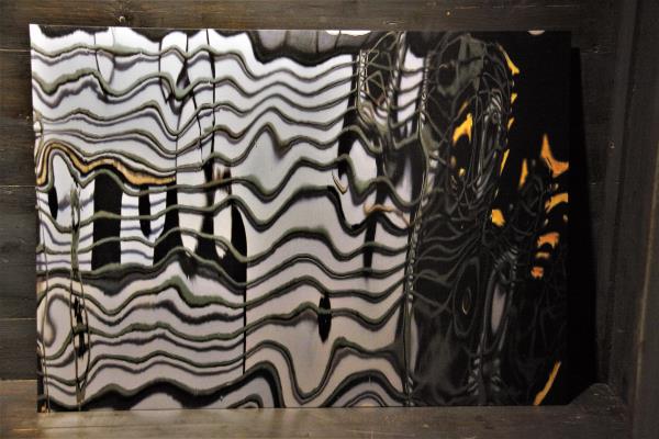 Ciascuno degli artisti selezionati, pur con il linguaggio che gli è più congeniale (pittura, scultura, fotografia, incisione, computergrafica, installazione), si è confrontato con l’idea del muoversi nell’elemento acquatico, dello scivolare sulla sua superficie, dell’acqua come fonte di vita ma anche in grado di riprendersi la terraferma e distruggere ciò che l’uomo vi ha costruito. Dunque, acqua in ogni sua declinazione. Si va dalla più classica visione dello scultore Piero Bertelli o del manierista Luigi Stefano Cannelli, che prendendo le mosse dalla mitologia fa nascere una moderna Venere dalla spuma dell’acqua, alla visione di Carlo Guidetti, fatta di tagli fotografici che mostrano quasi un close-up dell’elemento acquatico, sfiorando l’informale, che invece è la scelta sia di Cindy Lopez che di Christina Mitterhuber. O ancora il paesaggio acquatico raffigurante Newcomb Beach (Truro, Massachusetts) realizzato a matita ad olio dall’americana Lorna Jean Ritz, in contrapposizione con l’opera di Antonella Mezzani in cui la sovrapposizione di immagini fotografiche di un volto femminile e della Luna, in un’increspatura senza soluzione di continuità che fa pensare all’andamento della marea, continuo e incessante, che tutto avvolge e trasforma. Una visione ricca di fascino è quella di Marina Iorio, che unisce in una sola le sue duplici passioni per l’Arte e la Scienza, grazie alla tecnologia Multibeam Side Scan Sonar, basata su di uno strumento che, ancorato sotto la chiglia delle navi, produce fasci di onde acustiche utilizzate per “disegnare” le profondità marine ed oceaniche. Ciò che ne scaturisce è a tutti gli effetti una visione traslata dell’elemento acqua. E che dire di Stephen Wozniak, e della sua installazione dal titolo Chop Wood, Carry Water? L’equivalente del “Tutto passerà” Zen: tutto è transitorio e qualsiasi cosa accada, la vita deve andare avanti, continuando a tagliare legna e portare acqua. Nelle parole dell’artista di Los Angeles: «Chop wood, carry water is like the Zen equivalent of this too shall pass. Everything is temporary, both good and bad stuff. No matter what is going on in the world, we have to do what must be. Before we enter enlightenment, we chop wood and carry water. After we reach enlightenment, we chop wood and carry water. No matter how accomplished we are, or how great our perceived failures, we will always have to attend life. Life goes on, we make it work and do the best we can». Una visione più tradizionale è quella dell’austriaca Bernadette Felber, con un romantico tramonto, come pure dell’opera di Maria Pia Michieletto o di Valentín Gallego Gallardo, mentre Maria Fatjó Parés mette in scena un’allegra gita in gondola. Di contro, in Laguna di Elisabetta Frameglia e nelle opere del canadese Gregg Simpson le classiche silhouette delle gondole vengono trasfigurate fino all’astrazione. Il rimando all’ecologia e al depauperamento sia di Venezia che del mare in generale è il soggetto principale sia delle opere di Carmelo Compare che di Hasti Sardashti, inglese di adozione, mentre più complessa ed interiore la visione dell’immensità del mare nelle due acqueforti di Elisabetta Viarengo Miniotti. Una mostra variegata, piena di spunti di riflessione.