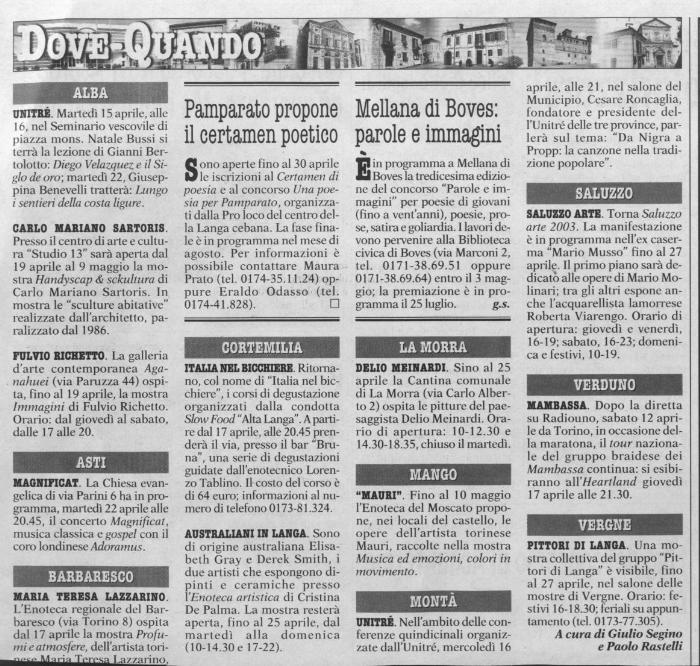 - Gazzetta d'Alba, p. 41, martedì 22 aprile 2003